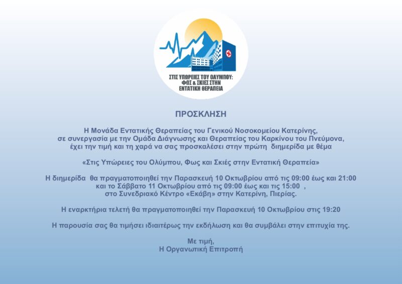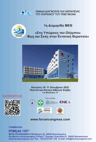 1η Διημερίδα Μ.Ε.Θ. “Στις Υπώρειες του Ολύμπου: Φως και Σκιές στην εντατική θεραπεία” 02/10/2025 Δελτία Τύπου