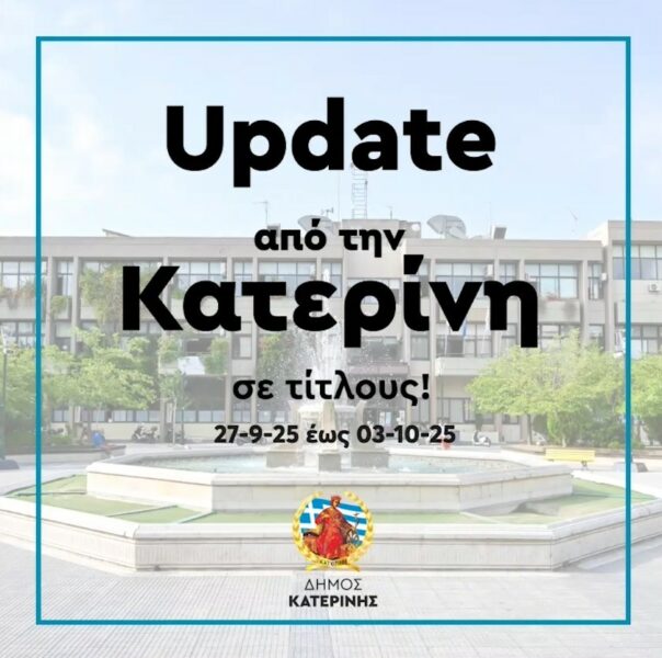 Update από την Κατερίνη σε τίτλους! 27 Σεπτεμβρίου έως 3 Οκτωβρίου 2025 (video) 03/10/2025 Δελτία Τύπου