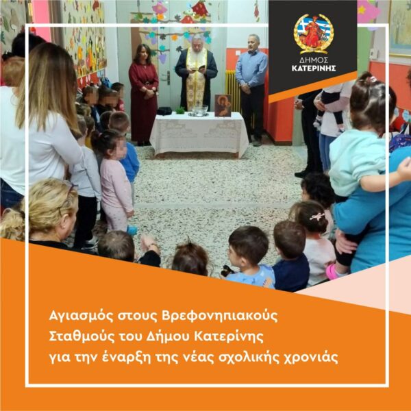 Με ευχές για μια παραγωγική χρονιά, τελέστηκε ο καθιερωμένος αγιασμός στους Παιδικούς/Βρεφονηπιακούς Σταθμούς του Δήμου Κατερίνης, σηματοδοτώντας την έναρξη της νέας σχολικής περιόδου, μετά και την ολοκλήρωση του πρώτου μήνα προσαρμογής των ωφελούμενων παιδιών.