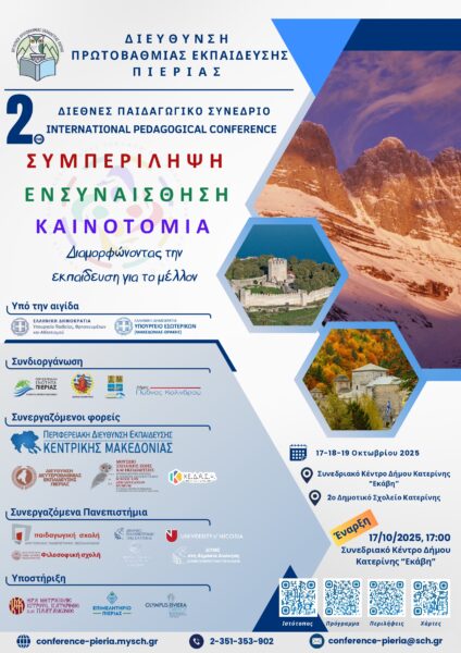 2ο Διεθνές Παιδαγωγικό Συνέδριο ΔΙ.Π.Ε. Πιερίας: «Συμπερίληψη, Ενσυναίσθηση και Καινοτομία: Διαμορφώνοντας την Εκπαίδευση για το Μέλλον»