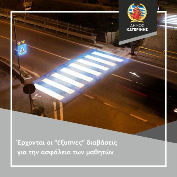 «Η ασφάλεια των μαθητών μας είναι απόλυτη προτεραιότητα. Με τις “έξυπνες” διαβάσεις αξιοποιούμε την τεχνολογία για να προστατεύσουμε τα παιδιά μας και να κάνουμε την Κατερίνη μια πόλη πιο ασφαλή, λειτουργική και ανθρώπινη», τονίζει ο Δήμαρχος Κατερίνης, Ιωάννης Ντούμος.Ο λόγος για το έργο «Κατασκευή έξυπνων πρότυπων διαβάσεων σχολείων» και συγκεκριμένα για την εγκατάσταση 14 διαβάσεων (οι 11 άμεσα), στις οποίες προχωρά ο Δήμος Κατερίνης, σε σχολικά συγκροτήματα της πόλης.